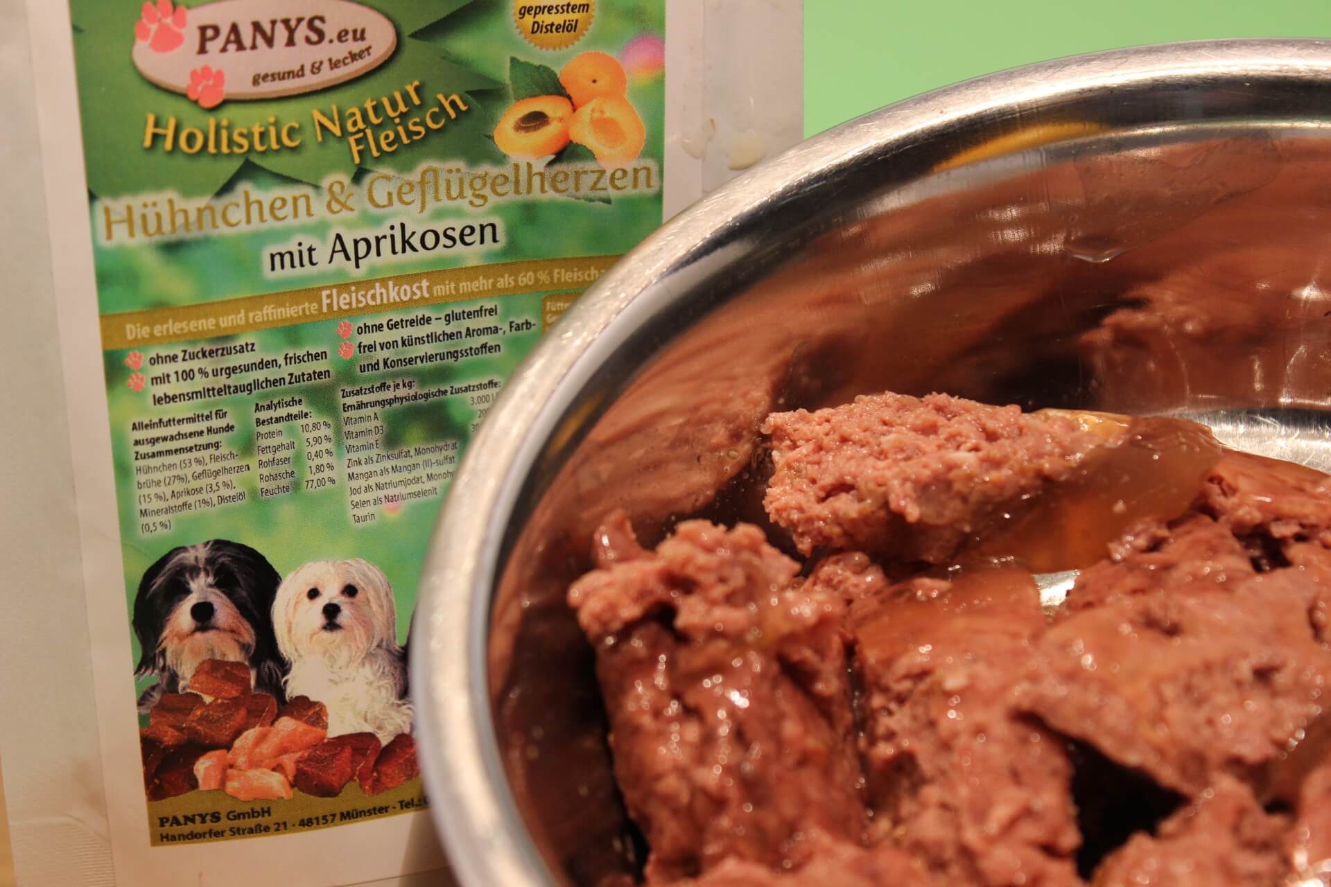 Alle PANYS Menüs im Pouchbeutel gibt es in 100 g und 300 g und sind als Alleinfuttermittel für ausgewachsene Hunde zugelassen. Mit wenigstens 60,0 % Fleischanteil und ohne Zuckerzusatz, sind es ernährungsphysiologisch ausgewogene Rezepturen.